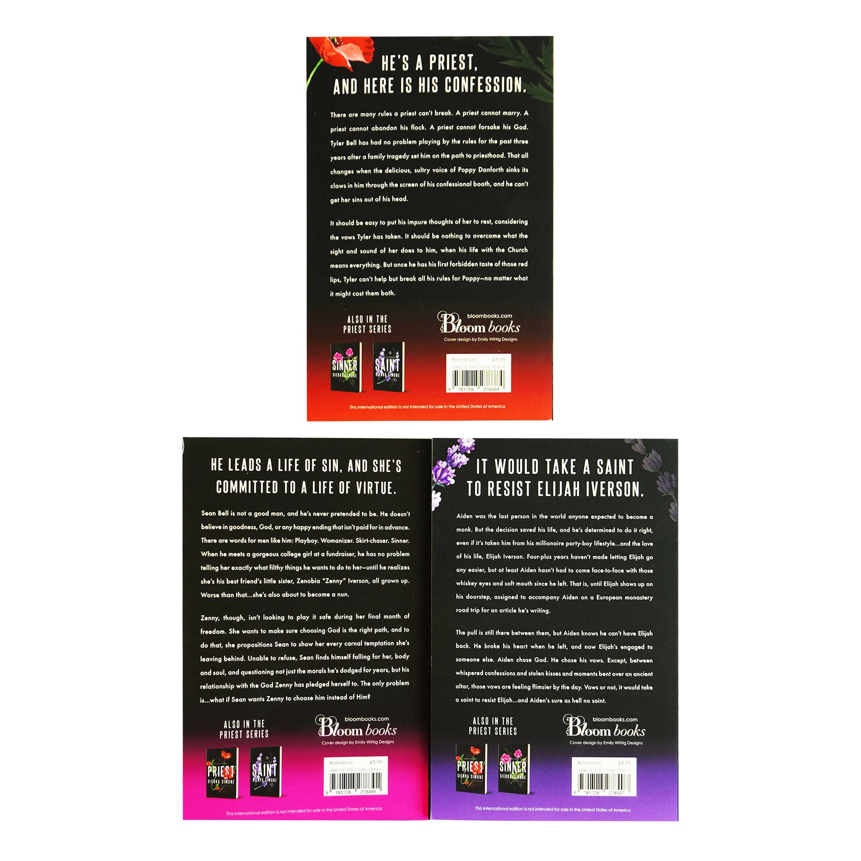 Embark on an electrifying journey of love, temptation, and ultimate redemption with the Priest Trilogy series by Sierra Simone! This captivating trilogy takes readers on an unforgettable roller coaster ride through the lives of three complex characters: Father Tyler Bell, the forbidden priest torn between his faith and desire; Poppy Danforth, the irresistible sinner who awakens his darkest desires, and the enigmatic Nora, whose sainthood provides a beacon of hope and redemption. With breathtaking prose and irresistible storytelling, this trilogy pushes boundaries, challenges beliefs, and leaves readers breathless with its raw intensity. Check out our extensive books page or purchase the entire trilogy in stock now at Books2Door.?